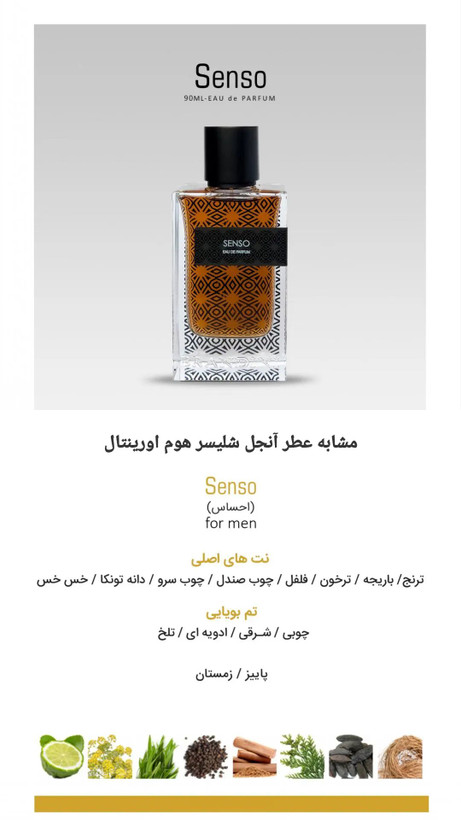 ساختار رایحه : گیاه خس خس , فلفل , سرو , دانه تونکا , چوب صندل , ترنج , ترخون